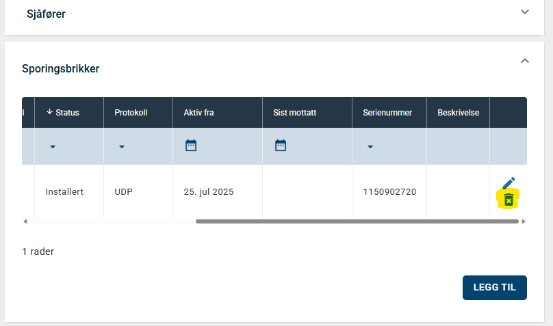 Scroll helt til høyre og klikk på søppelkasseikonet for å slette enheten fra eiendelen: