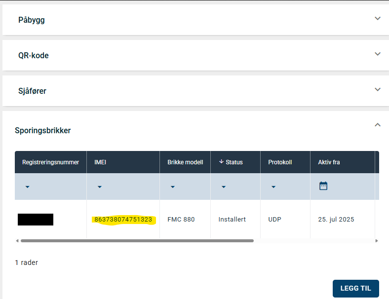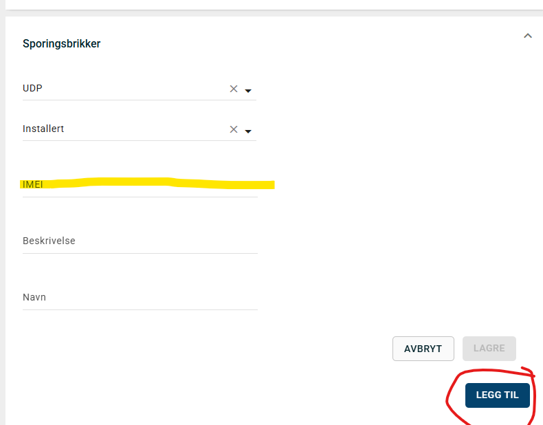 Så fyller du inn IMEI (de andre feltene kan stå blanke) og klikker "Legg til" en gang til.
